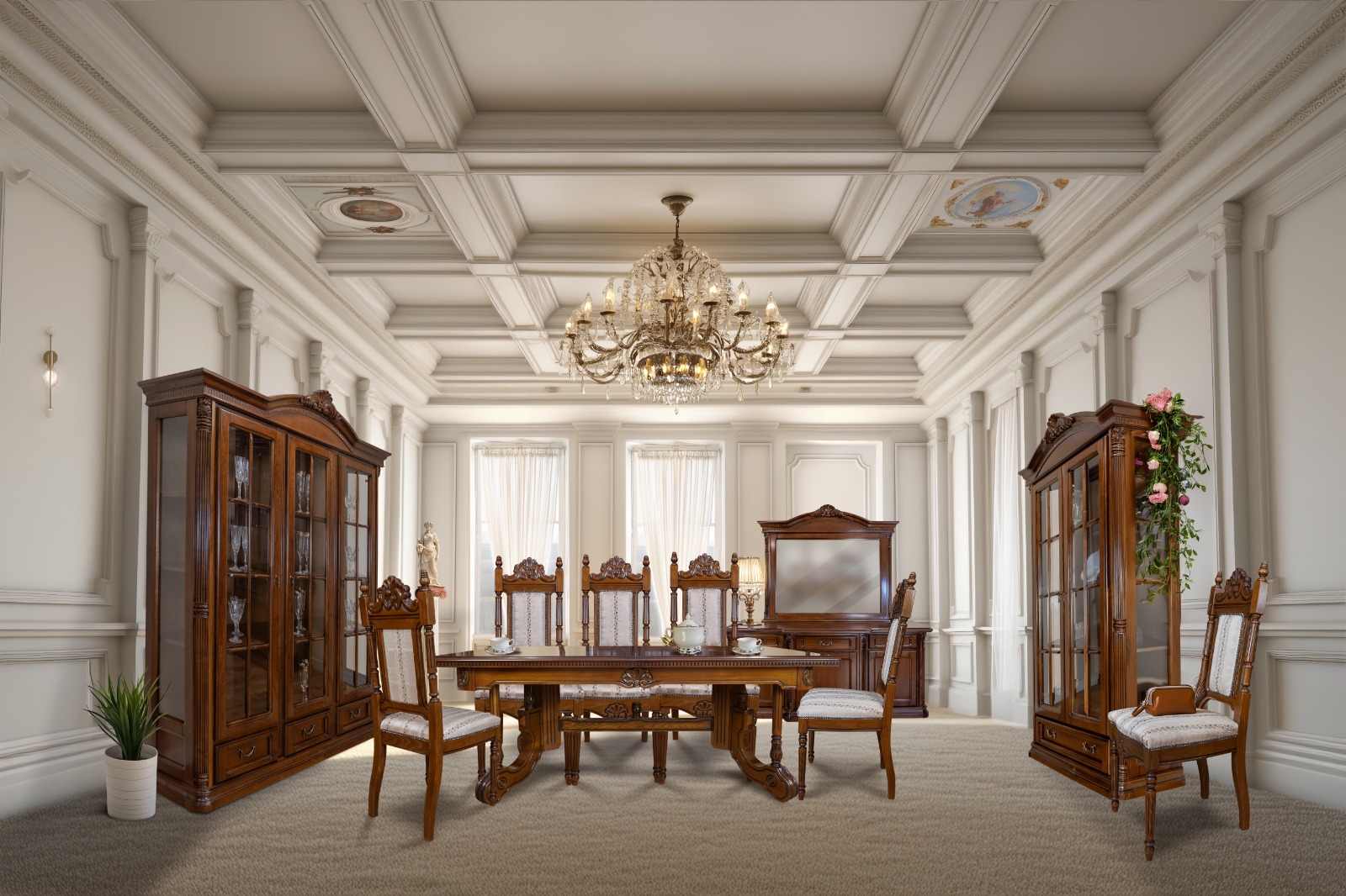 განსაკუთრებული ხარისხის ავეჯი დამზადებულია რუმინეთში, მასიური კაკლის, წიფლის და მუხის ხისგან.